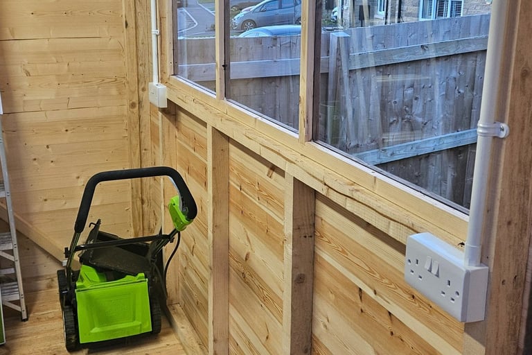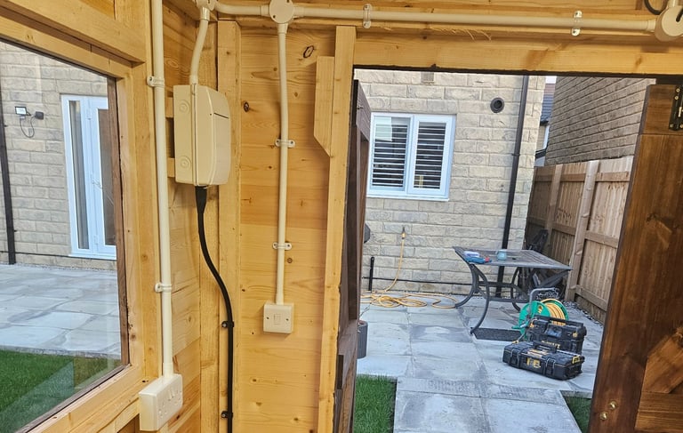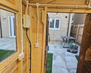 On a new build property our client asked us to install power and lighting to their new garden shed. We installed a new consumer unit, sockets, internal lighting and security lighting externally. This upgrade provides the shed with a reliable, safe, and efficient electricity connection, opening up new possibilities for lighting, power tools, heating, and other electrical needs in the outdoor space.