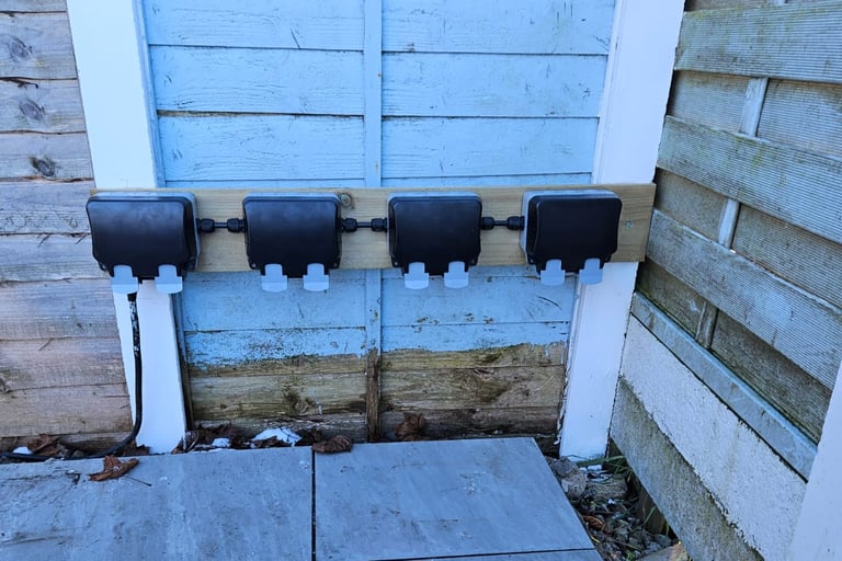 We supplied and installed new weatherproof outdoor sockets for our client. The newly installed outdoor sockets offer a safe and easy way to power outdoor tools, lighting, appliances, or decorative features, making the outdoor spaces more functional and enjoyable year-round. These sockets provide the flexibility to work in the garden without the hassle of long extension cords.